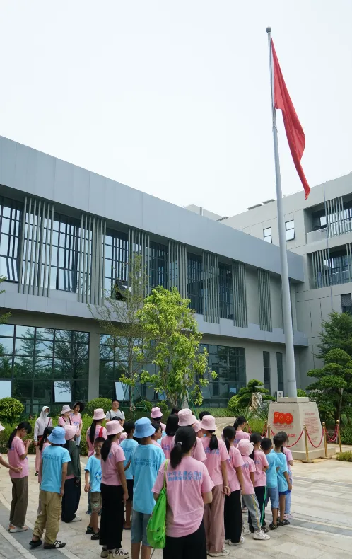 紧接着,孩子们来到了建党百年庆典红旗——070号红旗前。讲解员讲述了尊龙时凯药业集团与庆典红旗的深厚渊源。孩子们听得津津有味,眼中闪烁着对党和国家的热爱与敬仰。