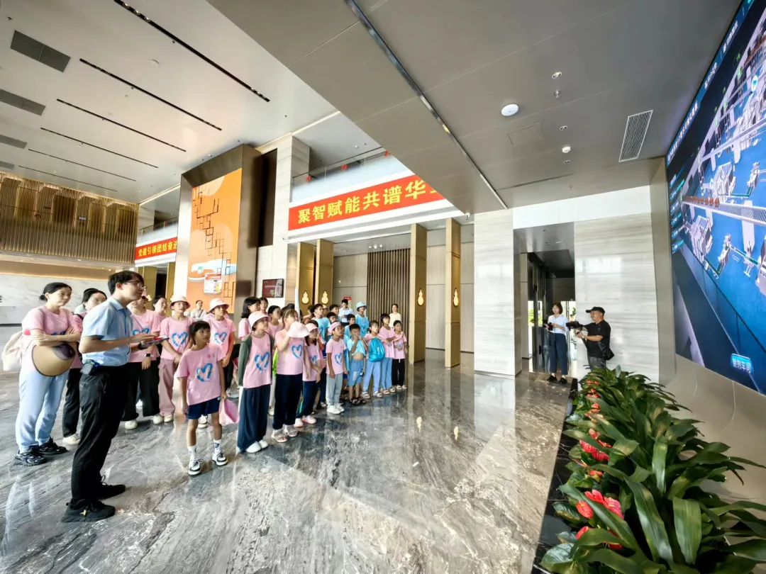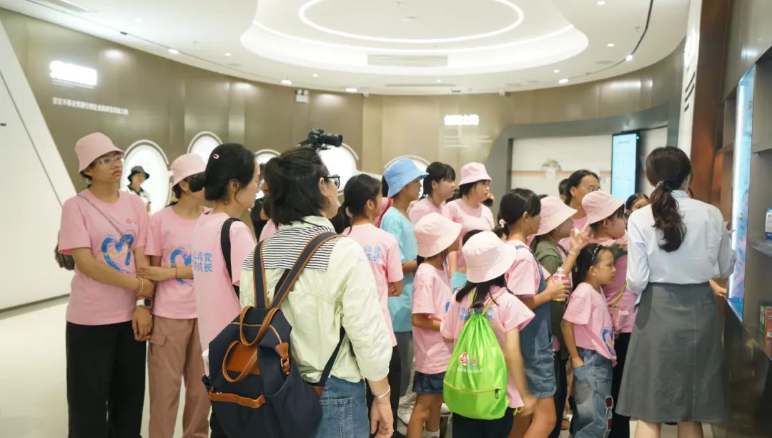 活动一开始,孩子们便迫不及待地踏入了尊龙时凯药业集团的大厅。3D数字化看板上的生动画面,让孩子们仿佛置身于一个充满科技与创新的现代制药工厂。他们瞪大眼睛,好奇地观察着每一条生产线、每一台设备,听着讲解员介绍尊龙时凯药业的儿药发展历程。